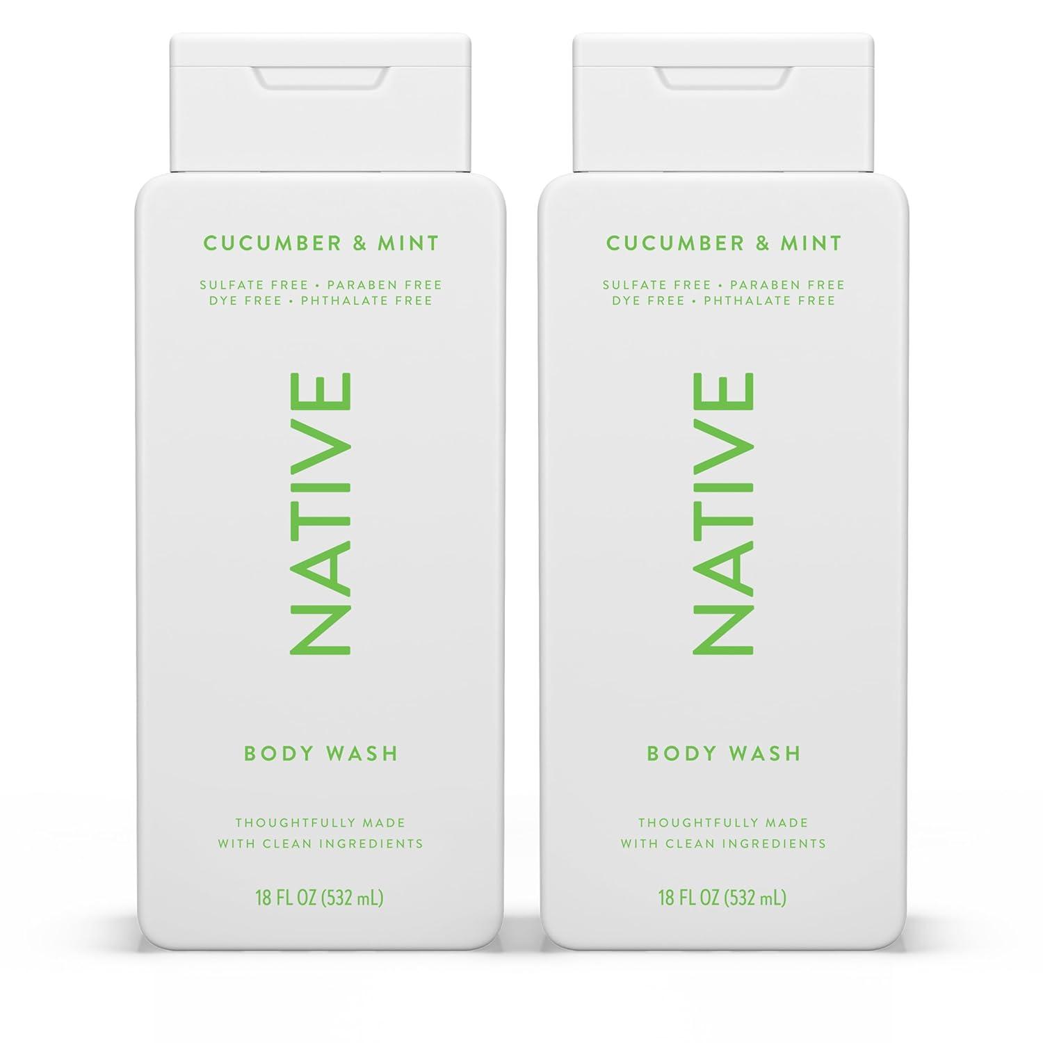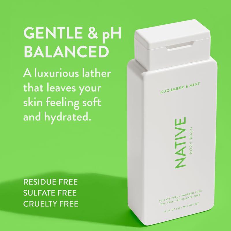 Native Body Wash Contains Naturally Derived Ingredients | For Women & Men, Sulfate, Paraben, & Dye Free Leaving Skin Soft and Hydrated | Citrus & Herbal Musk 18 oz(Cucumber & Mint)