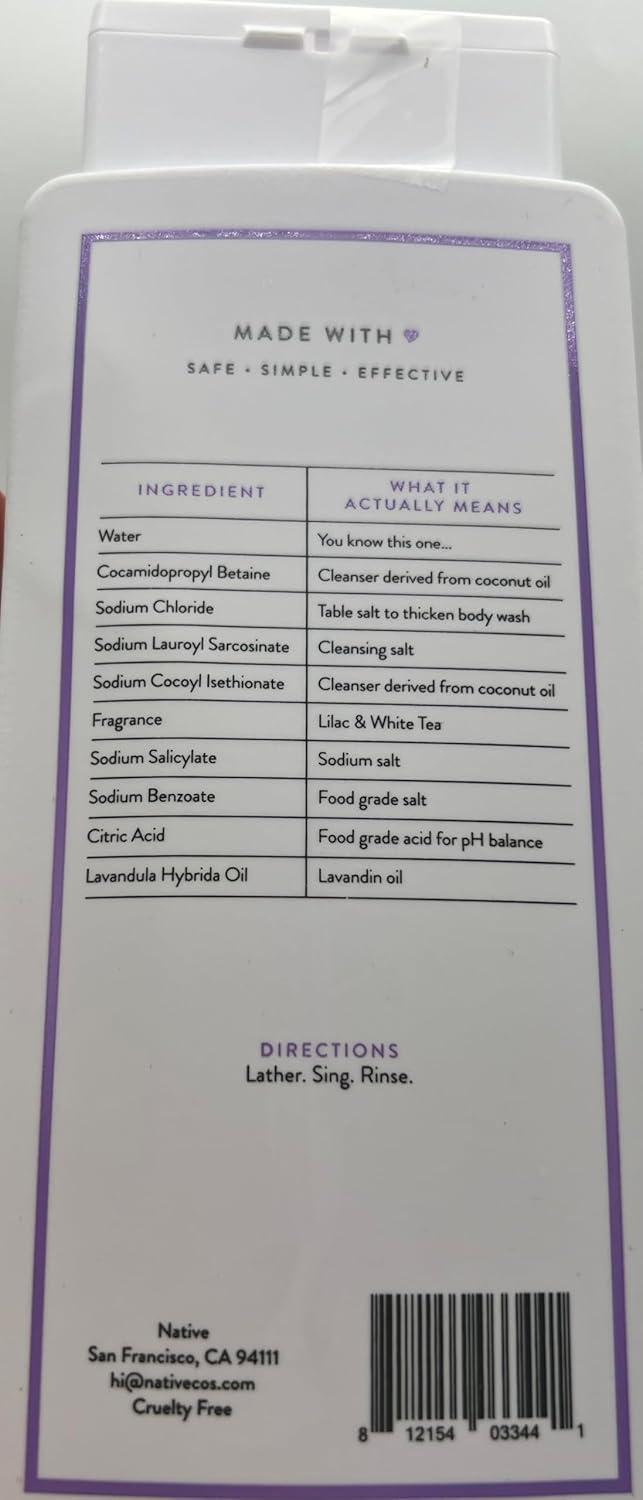 imageNative Body Wash Contains Naturally Derived Ingredients  For Women ampamp Men Sulfate Paraben ampamp Dye Free Leaving Skin Soft and Hydrated  Citrus ampamp Herbal Musk 18 ozLilac  White Tea